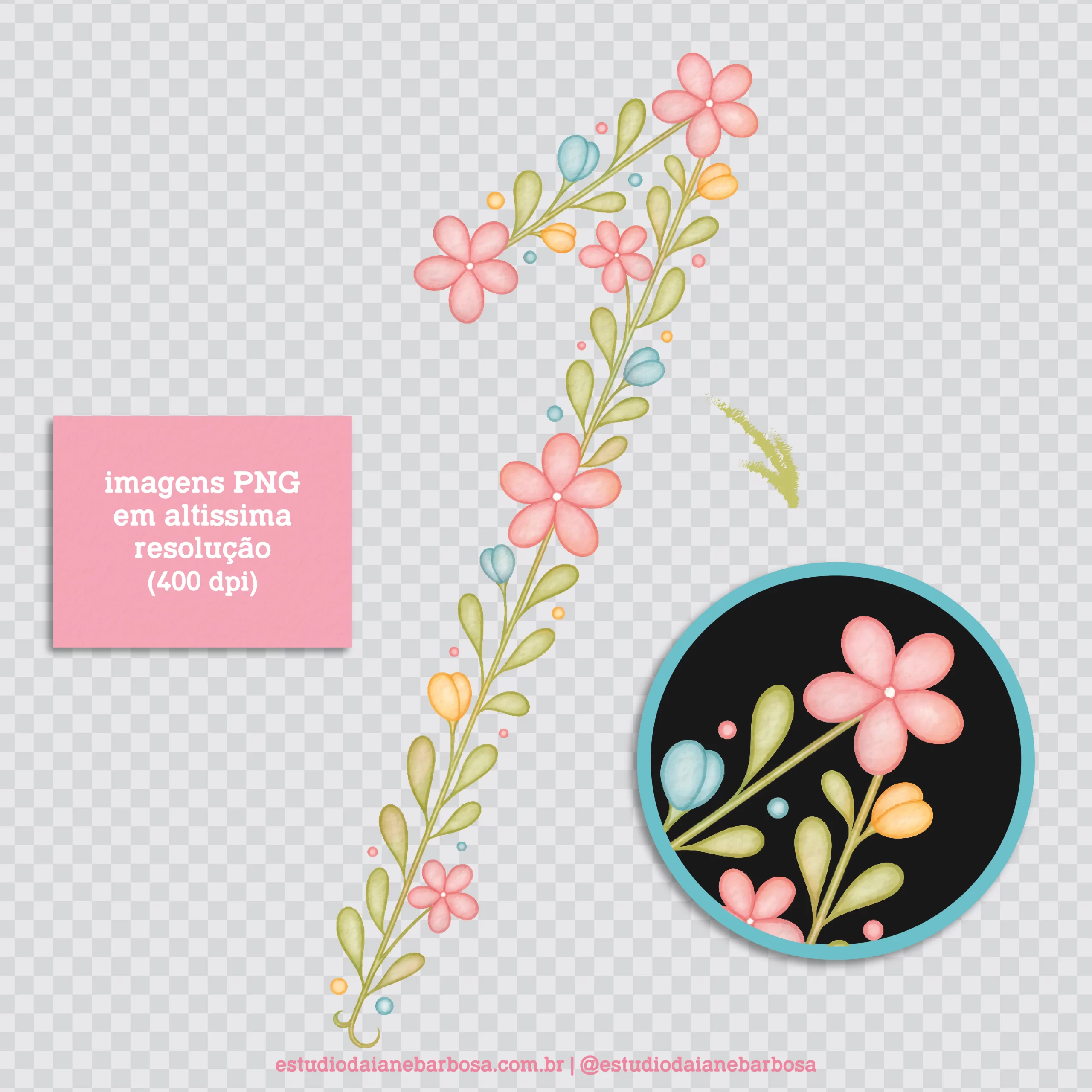 Kit Digital Alfabeto Florido – APENAS NÚMEROS – Cliparts em aquarela