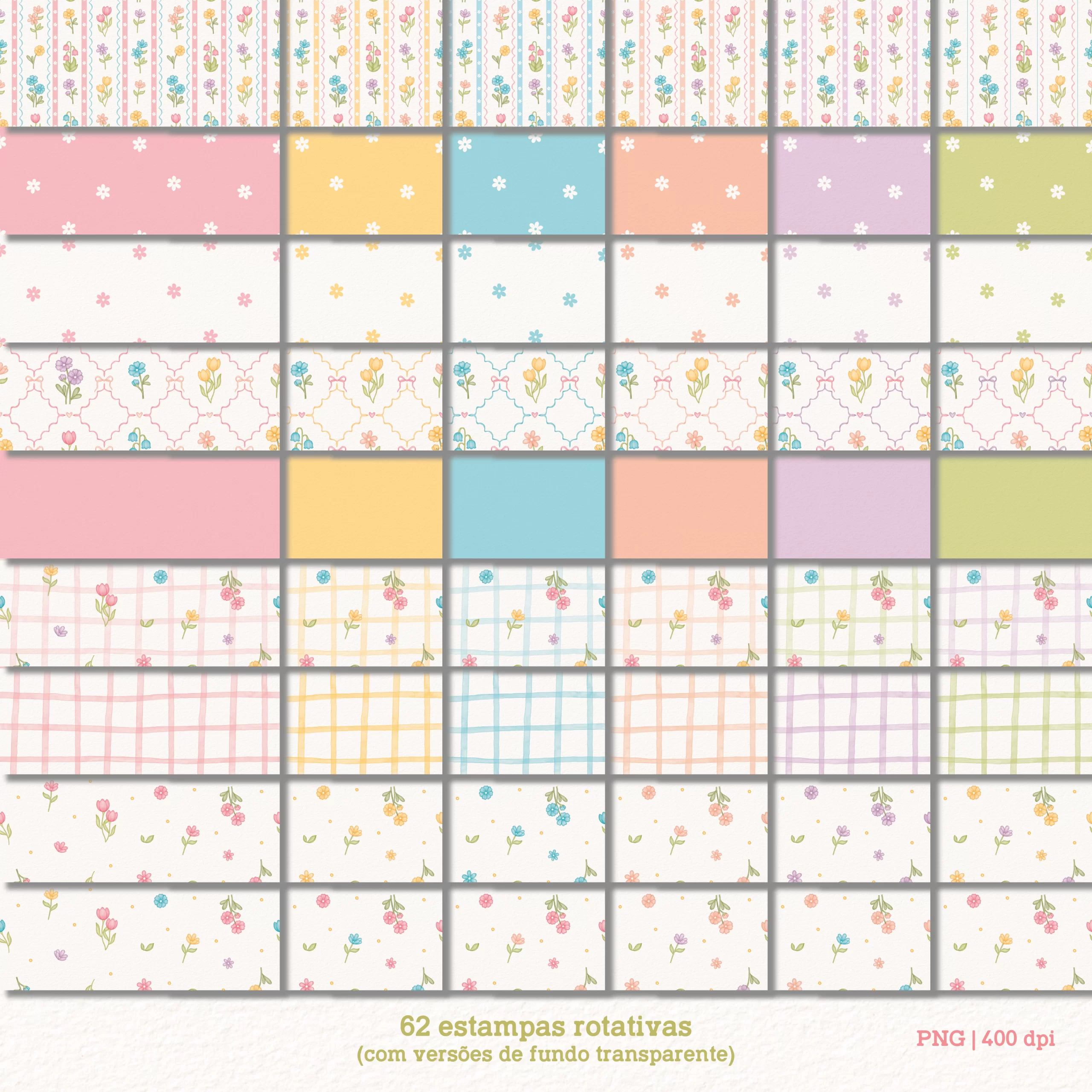 – 62 papéis digitais rotativos (incluindo as estampas com fundo transparente);
