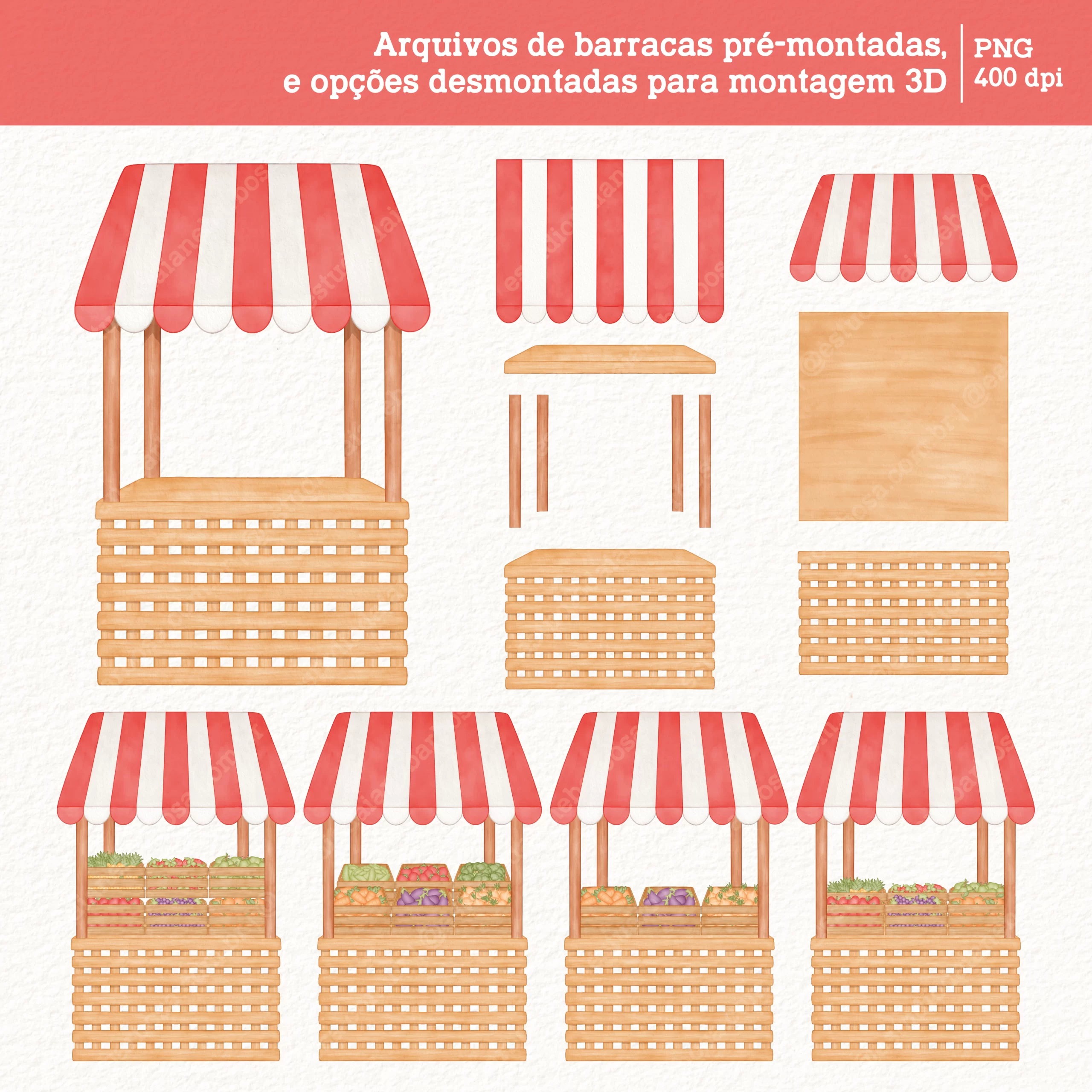 – Arquivos de barracas pré-montadas, e opções desmontadas para montagem 3D;